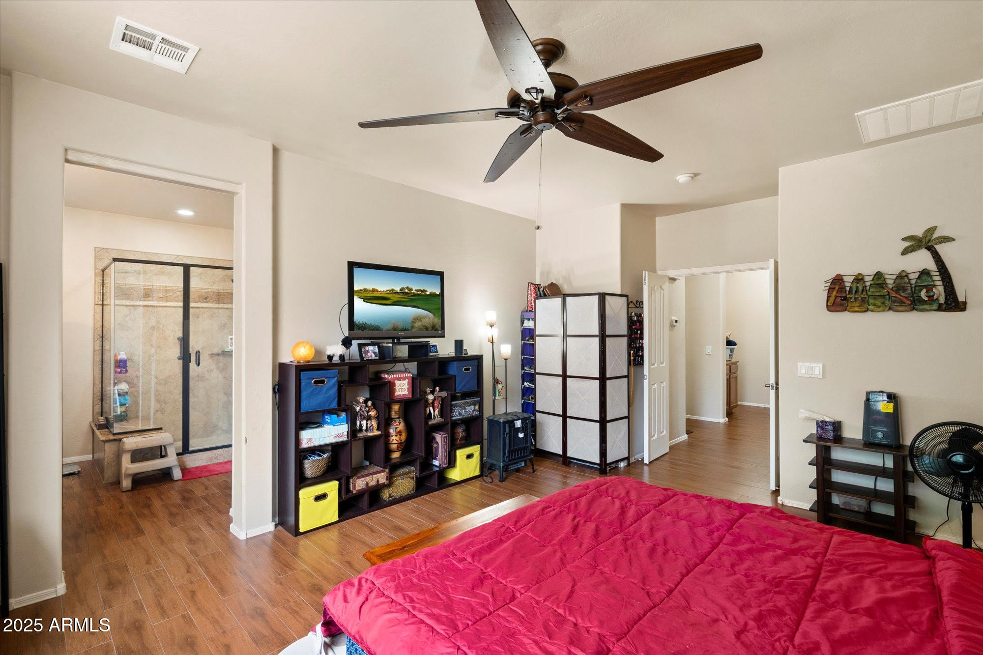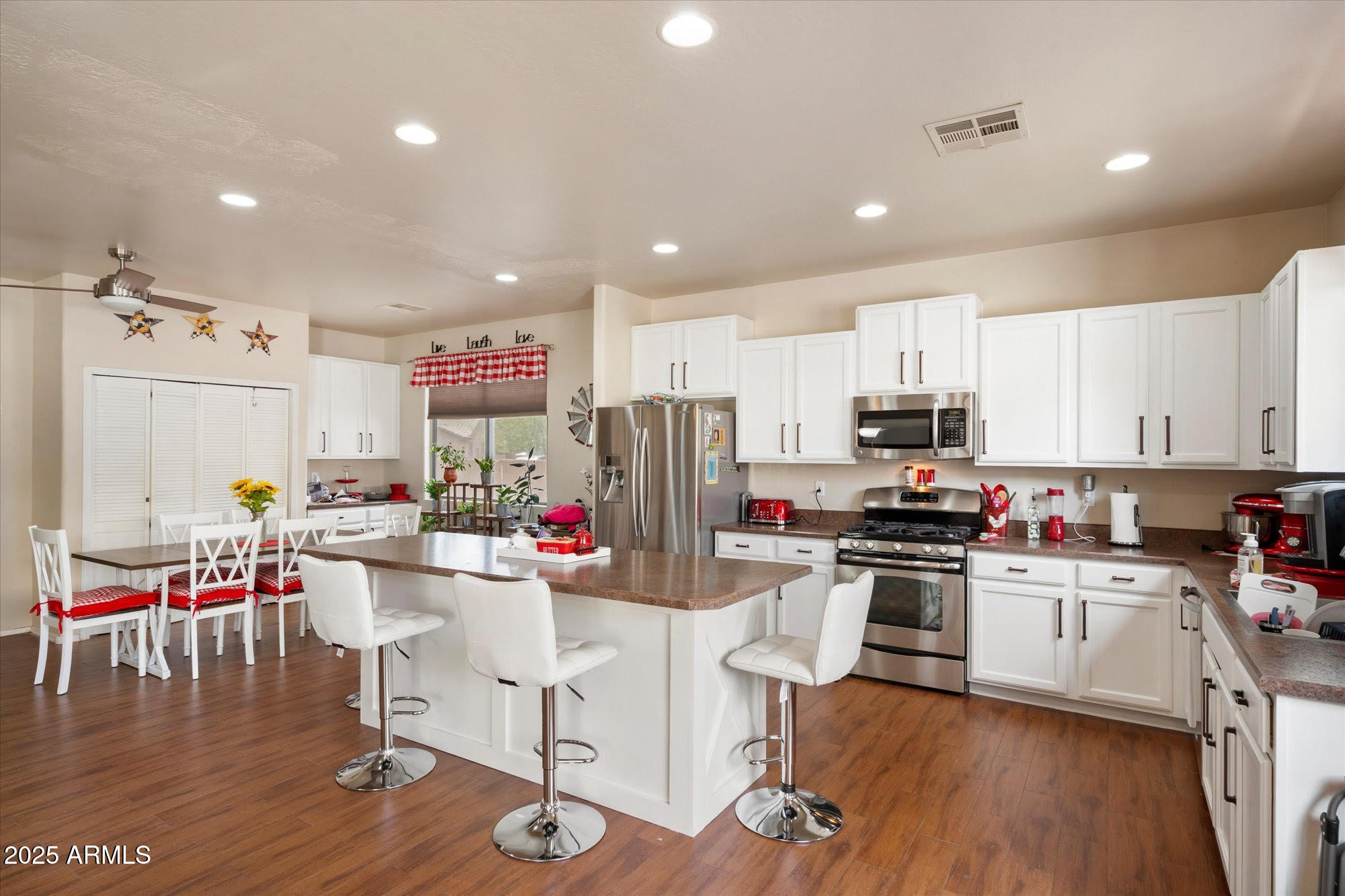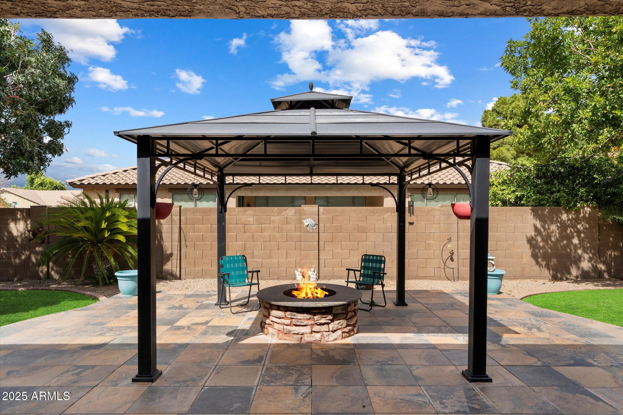 Welcome home to this beautiful 5-bed, 3-bath single-level home on a desirable corner lot in Queen Creek's Emperor Estates! Designed for family living, the open floor plan connects the kitchen, dining, and living areas--perfect for everyday life and entertaining. The split layout offers a private primary suite with dual sinks, soaking tub, and walk-in closet. Step outside to a large backyard with a covered patio and custom pergola--ideal for BBQs and Arizona evenings. With no stairs, a 3-car garage, and close proximity to parks, schools, and shopping, this move-in-ready home checks every box for comfort and convenience!