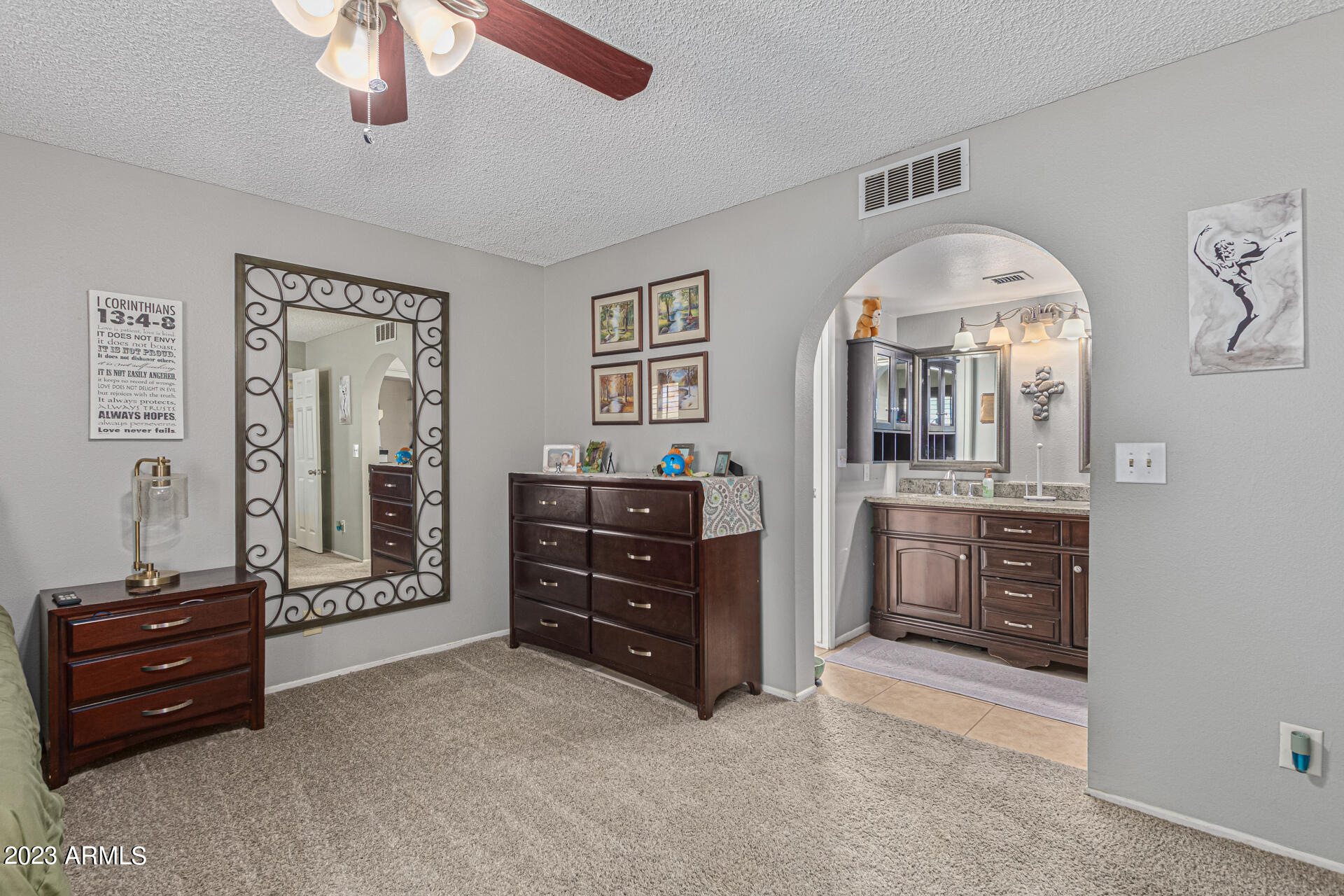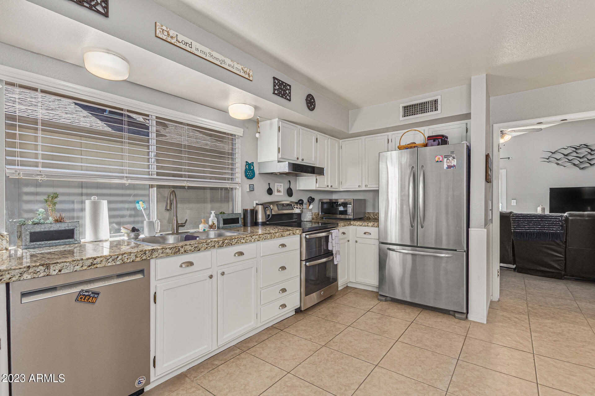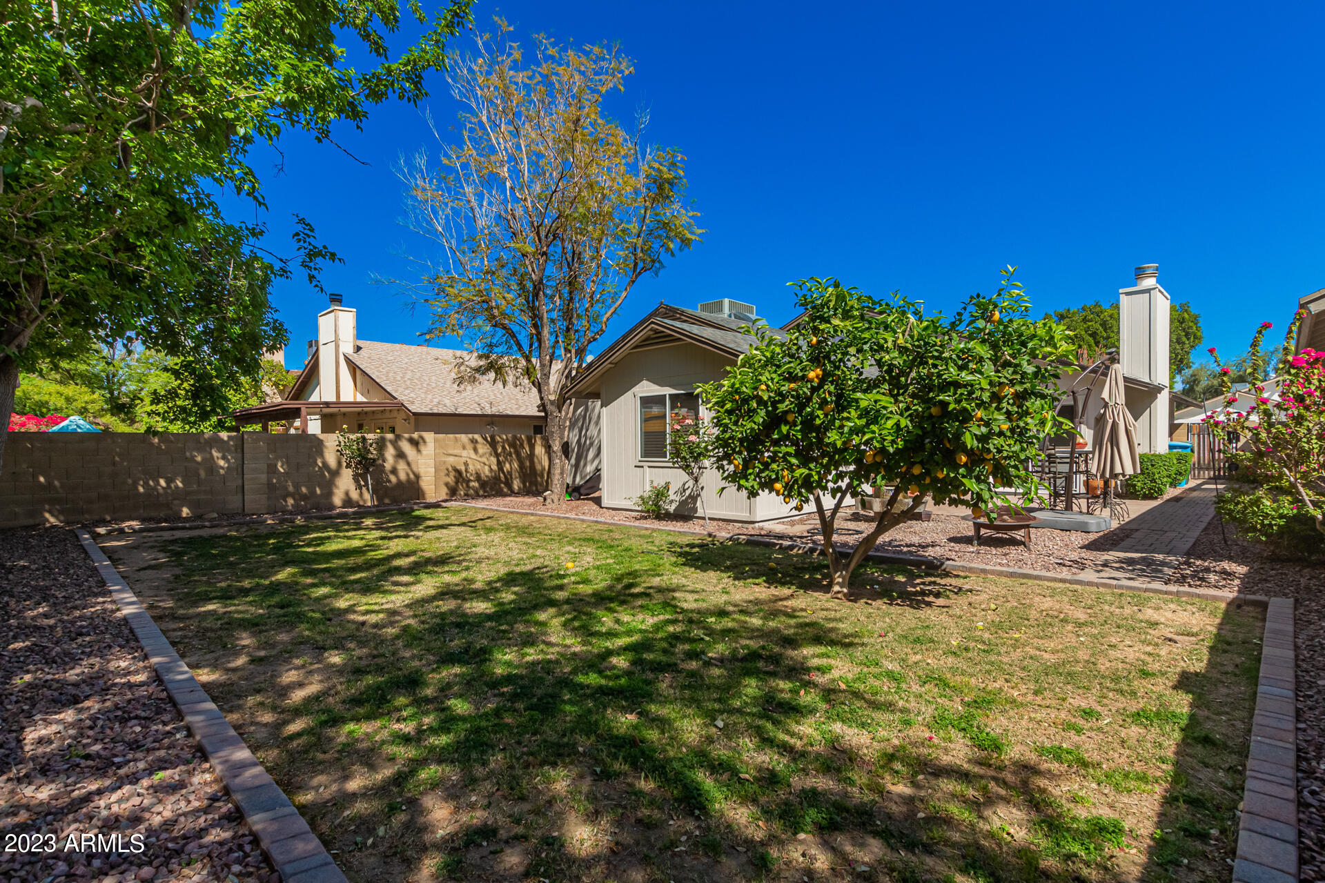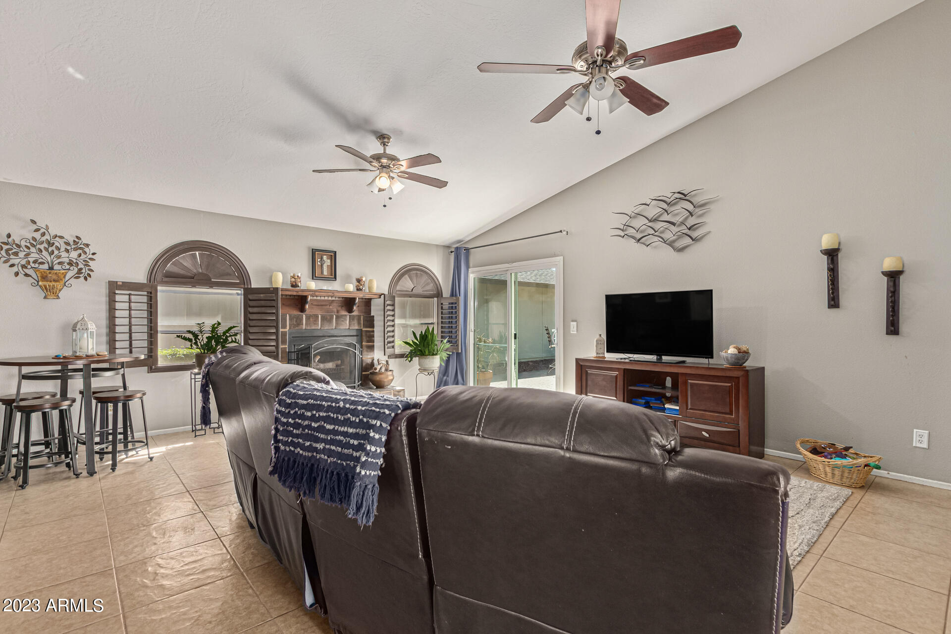 Become the proud owner of this fabulous 3-bed, 2-bath home in Village at Canyon View! This home features an all NEW AC UNIT and NEW ROOF! Upon entering, you'll notice tile flooring, plantation shutters, & high vaulted ceilings that add to the spacious feel. Share fun memories in the welcoming living room w/a wood-burning fireplace that will keep you warm in the cooler months. Sizable family room has sliding glass doors to the back patio. Large eat-in kitchen displays SS appliances, granite tile counters, & plenty of white cabinets. Continue onto the primary bedroom featuring plush carpet, an ensuite w/dual sinks, & a granite vanity. And lastly, the relaxing backyard includes pavers, a fragrant citrus tree, garden fountain, & mature shade trees. Take advantage of the fantastic amenities this Community has to offer! Hurry, before it's gone