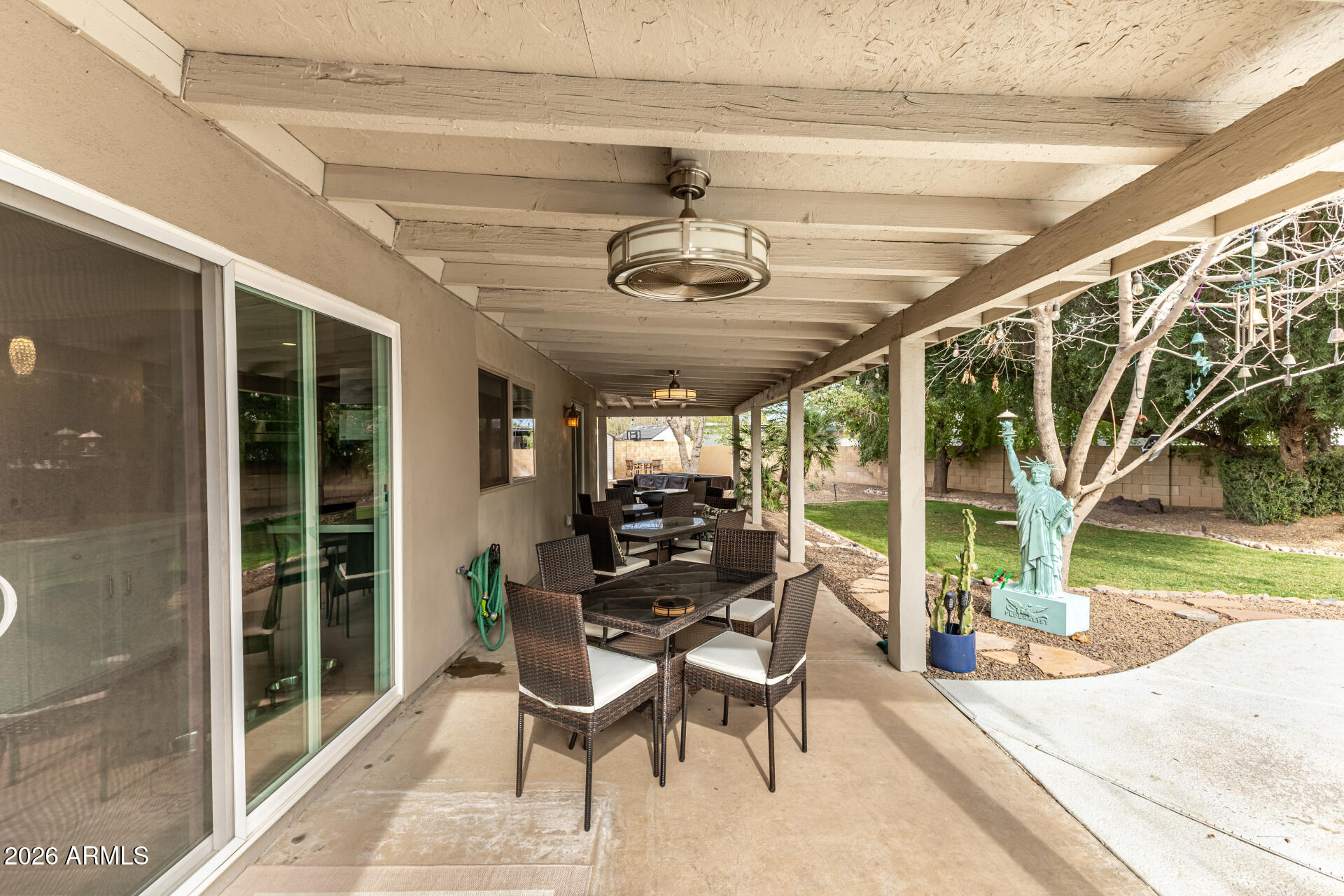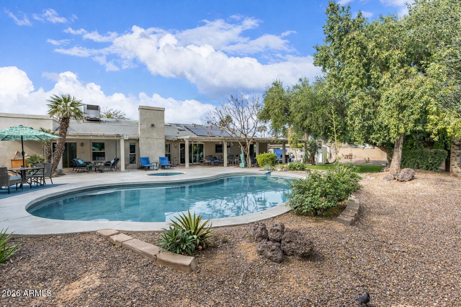 Stunning 5-bedroom home perfectly situated on a PRIME cul-de-sac is truly a dream come true! Designed with modern comfort and style in mind, this exceptional residence is filled with features you're sure to love. Sunlight pours into every corner, from the large living & dining room to the harmonious great room highlighted by a cozy wood-burning fireplace that adds warmth and elegance. Gourmet kitchen is a cook's delight, fully equipped with stainless steel appliances, abundant cabinetry adorned with crown moulding, tile backsplash, recessed/pendant lighting, quartz counters, and a center island with a breakfast bar. Double doors lead to the grand owner's retreat, showcasing outdoor access, a walk-in closet, and an ensuite with a garden tub. Spacious backyard is made for entertaining. A covered patio, citrus trees, a refreshing pool, and a spa complete the picture. Plus, enjoy the added benefit of solar panels for enhanced energy efficiency. Hurry! This exceptional haven will sell fast!