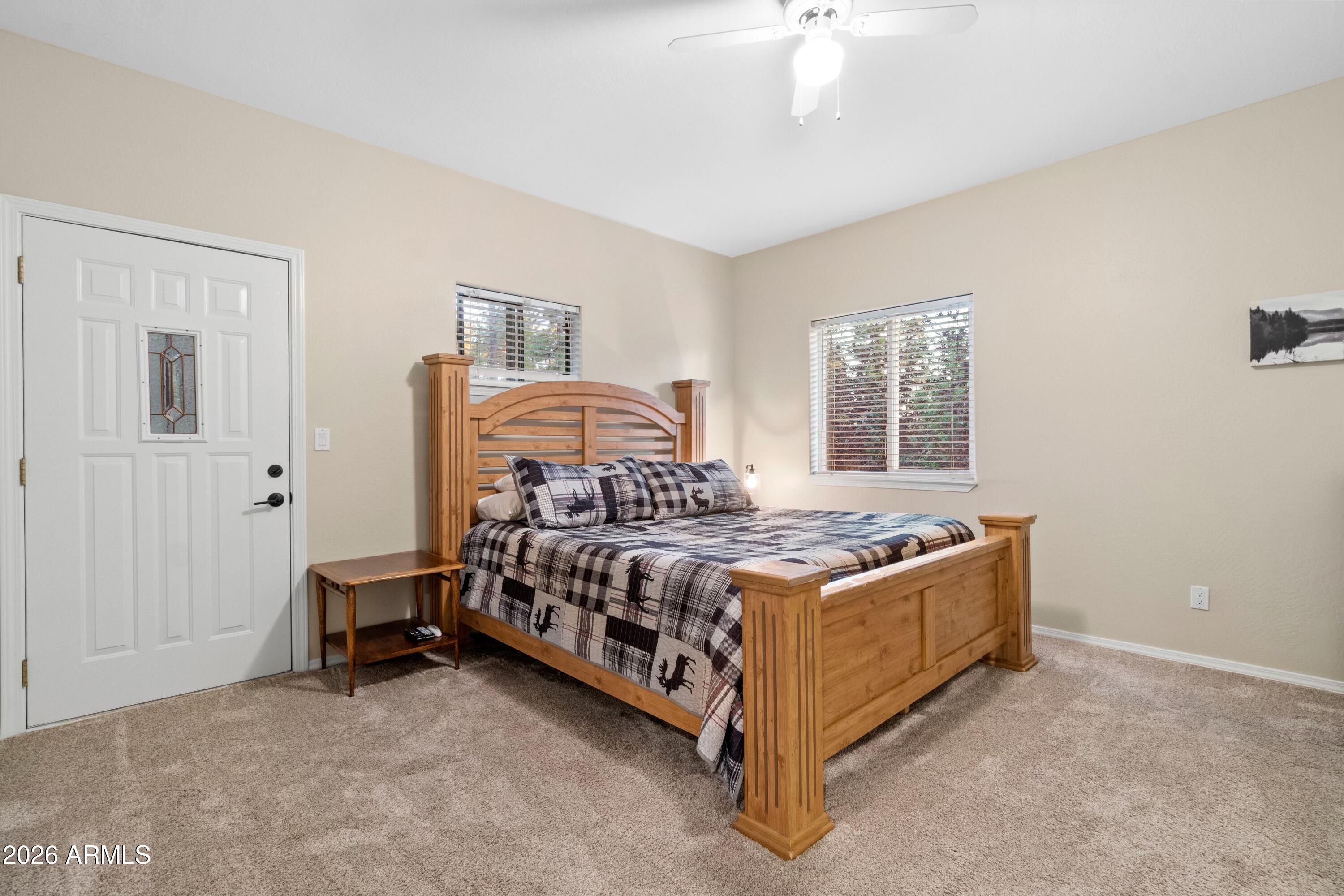 Additional highlights include a heated two-car garage with epoxy floors, TV, separate storage shed for outdoor gear and hobbies, RV parking, and no HOA.Located Just 5 minutes from the forest, trails, and nearby lakes, this cabin offers easy access to outdoor recreation while maintaining privacy and serenity. The property owner has never used it as a rental.